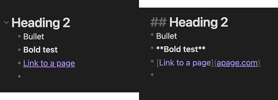 For those who don't know markdown, the left shows the written text, and the right shows how it's stored as a simple text file on your computer.